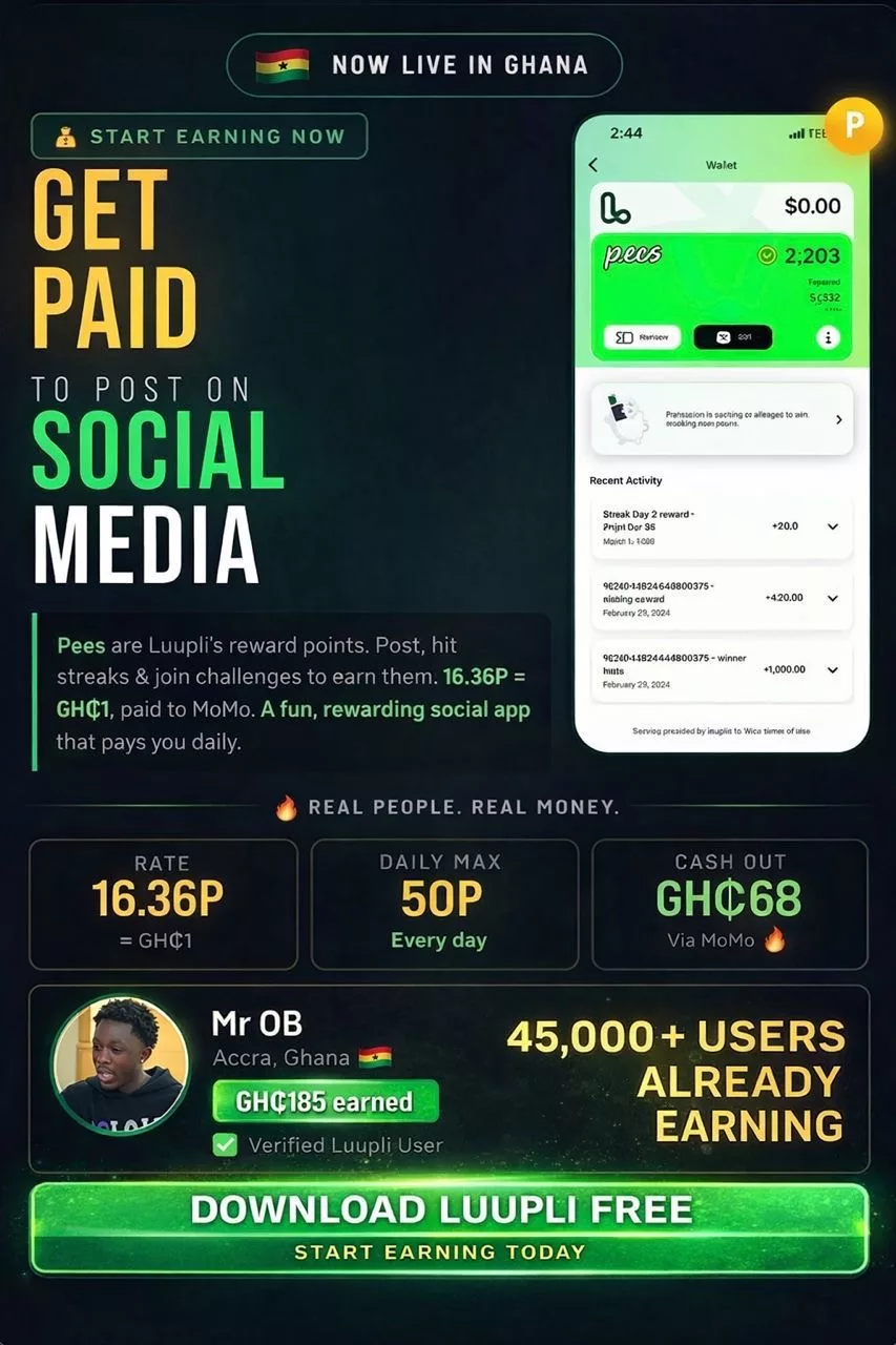 Luupli — the British social media platform with a growing user base worldwide — has gone live & Viral in Ghana. Every day you open the app, you earn.