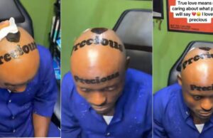 Man Tattoos Girlfriend’s Name On His Head Ahead Of Valentine (Video)