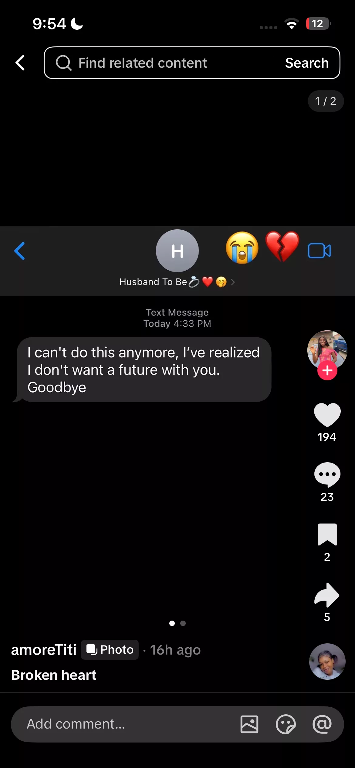 He wrote “I can’t do this anymore. I’ve realized I don’t want a future with you. Goodbye”.