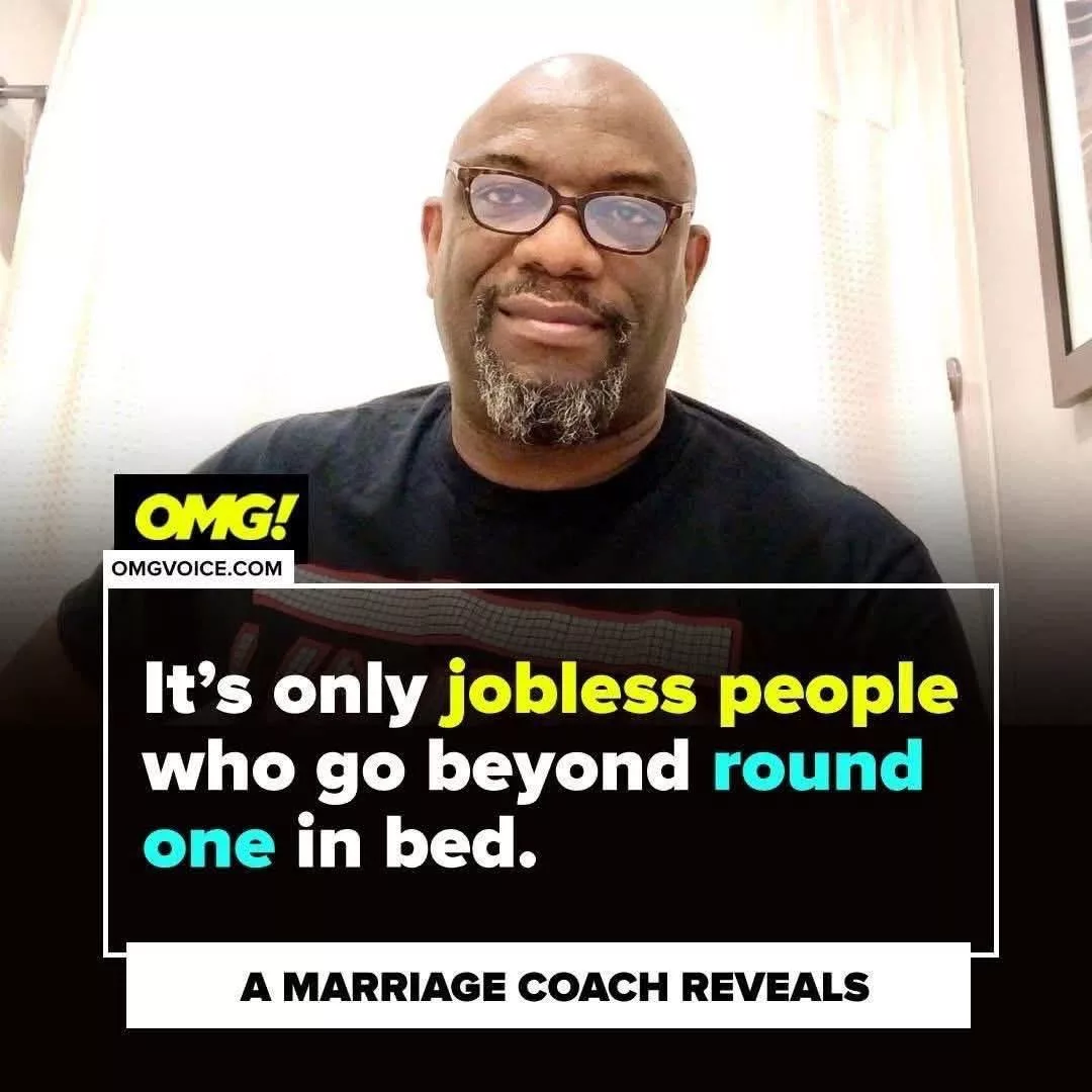 A marriage coach has taken to social media to make it known that it makes sense for a man to go more than a round during sexual intercourse.
