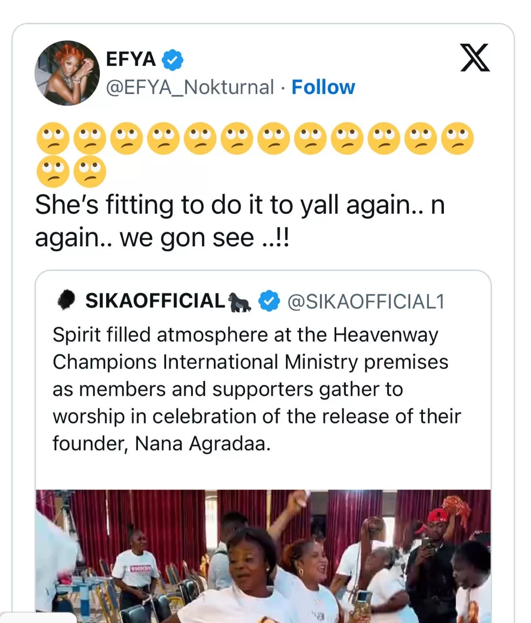 Reacting to the videos that flew across social media platforms, Efya said that the members of the church, and Ghanaians at large never learn from their mistakes.